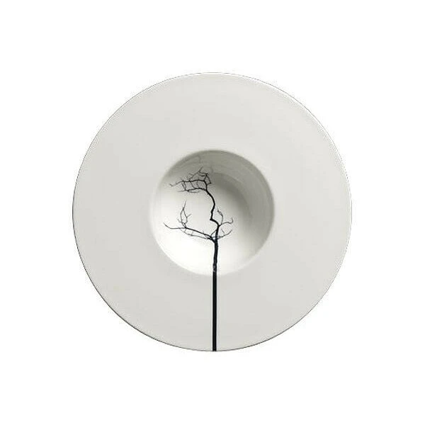Der Suppenteller Black Forest von Dibbern ist ein wahres Kunstwerk an Funktionalität und Optik. Der tiefe Teller mit breitem Rand hat einen Durchmesser von 26 cm und fasst 0,25 l. Er ist aus hochwertigem Knochenporzellan gefertigt und spülmaschinenfest. Das Besondere an diesem Modell ist neben dem breiten Rand das schwarze Dekor auf weißem Hintergrund. Hierbei handelt es sich um einen schlanken Baum mit Astwerk, der von einem Rand des Tellers bis in die Vertiefung verläuft – edel und stilvoll.