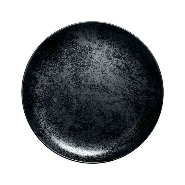 RAK serviert den edlen, flachen Teller der Serie Fusion Karbon schwarz.