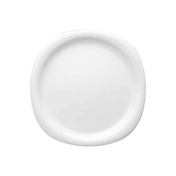 Außergewöhnlich kommt der Speiseteller mit 28 cm Größe der Traditionsfirma Rosenthal daher. Seine Form erinnert an einen von Wasser geglätteten Flussstein. Er bewegt sich somit zwischen perfektem Kreis und vollendetem Quadrat. Er gehört zur Kollektion “Suomi”. Der Teller wurde aus Porzellan hergestellt. Seine Form schmeichelt dem Auge. Das strahlende Weiß benötigt kein Dekor und bleibt selbst nach langer Verwendung erhalten. Der Speiseteller lässt sich sowohl in die Spülmaschine als auch in die Mikrowelle geben.
