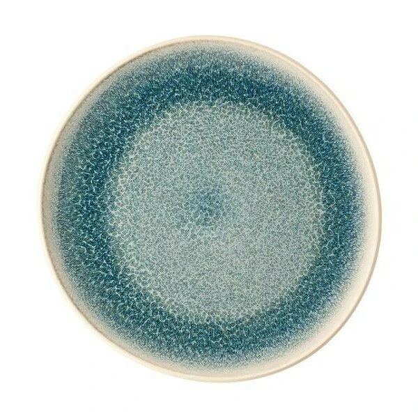 Der flache Teller der Serie Junto von Rosenthal zieht alle Blicke auf sich. Die feinen Farbverläufe glänzen auf dem hochwertigen Steinzeug.