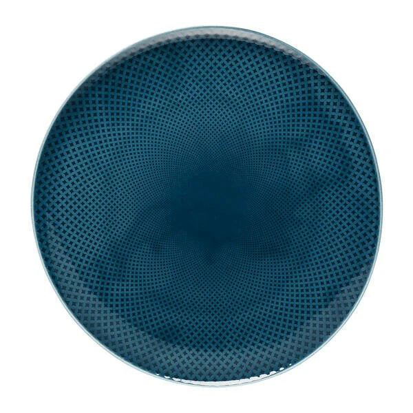 Der Teller Junto Ocean Blue von Rosenthal bietet genug Raum zum Drapieren und Anrichten von Speisen aller Art. Das Erscheinungsbild des Porzellantellers ist geprägt von filigran ausgearbeiteten Rauten, die von freien Flächen unterbrochen werden und dem Dekor einen strukturierten Charme verleihen. Aufgebrochen wird diese Klarheit durch eine asymmetrische Formsprache und die helleren bis dunkleren Farbsegmente, die durch eine reaktive Glasur entstehen.