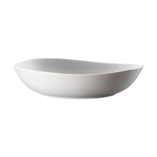 Der tiefe Teller der Serie Junto von Rosenthal überzeugt durch seine einzigartige geschwungene Form und das feine Muster auf der glänzenden weißen Oberfläche.