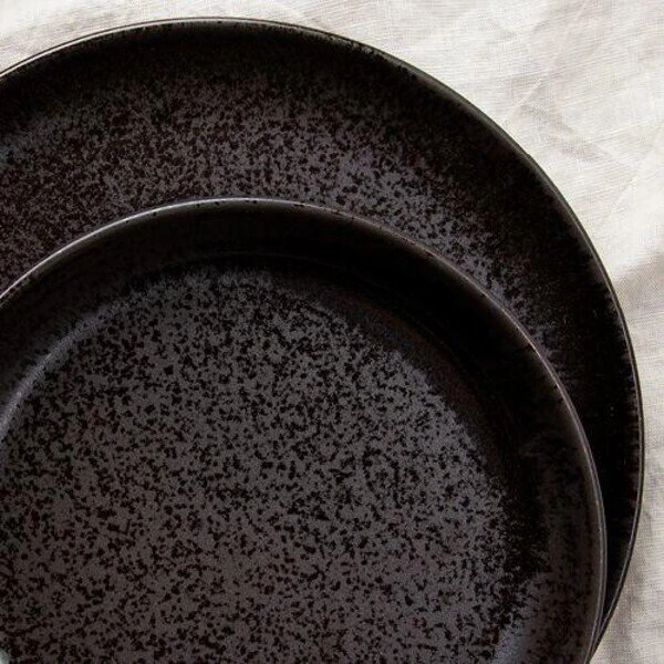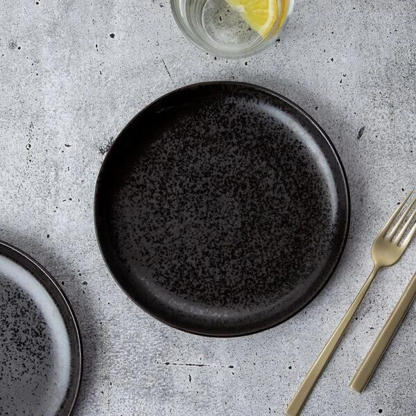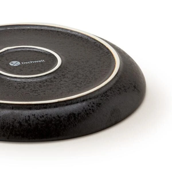Durch den Speiseteller der Serie Java von tischwelt werden Ihre Speisen jeden Tag aufs Neue liebevoll kontrastiert und in ihrer Wirkung verstärkt. Die einzigartige Farbgebung des Porzellantellers zeugt von einem trendigen Schwarz, das an javanisches Vulkangestein angelehnt ist und von einem erdigen Braun an den Rändern akzentuiert wird. Liebevoll aufgetragene, variierende Glasursprenkel runden den Auftritt ideal ab.